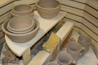 I bisqued the commercial clay pieces from the "backyard mandala" (see previous "Verb assignment" posts) with dirt still on them. Some unexpected orang-ish dust became more evident after the firing.